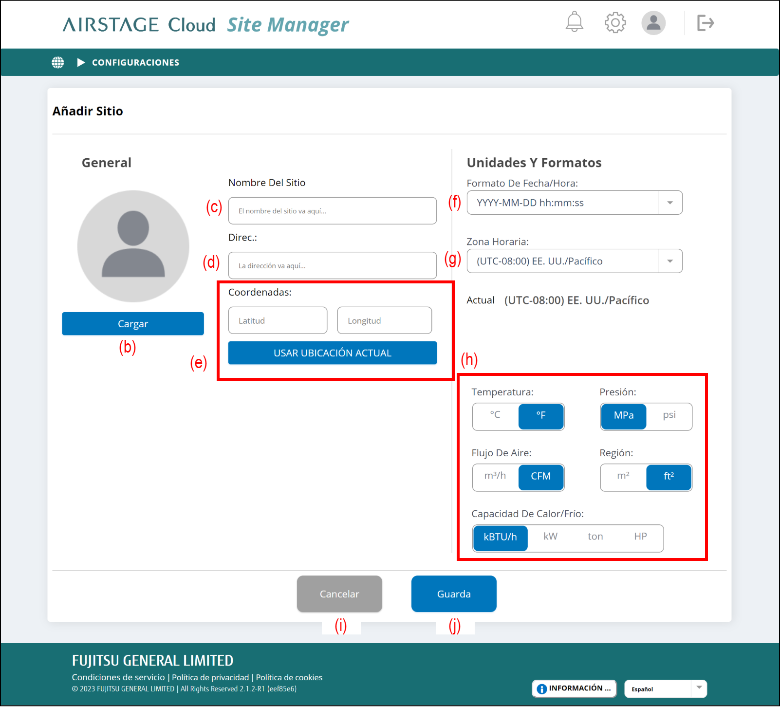 Si desea cancelar la creación de un nuevo Sitio, seleccione el botón (i).