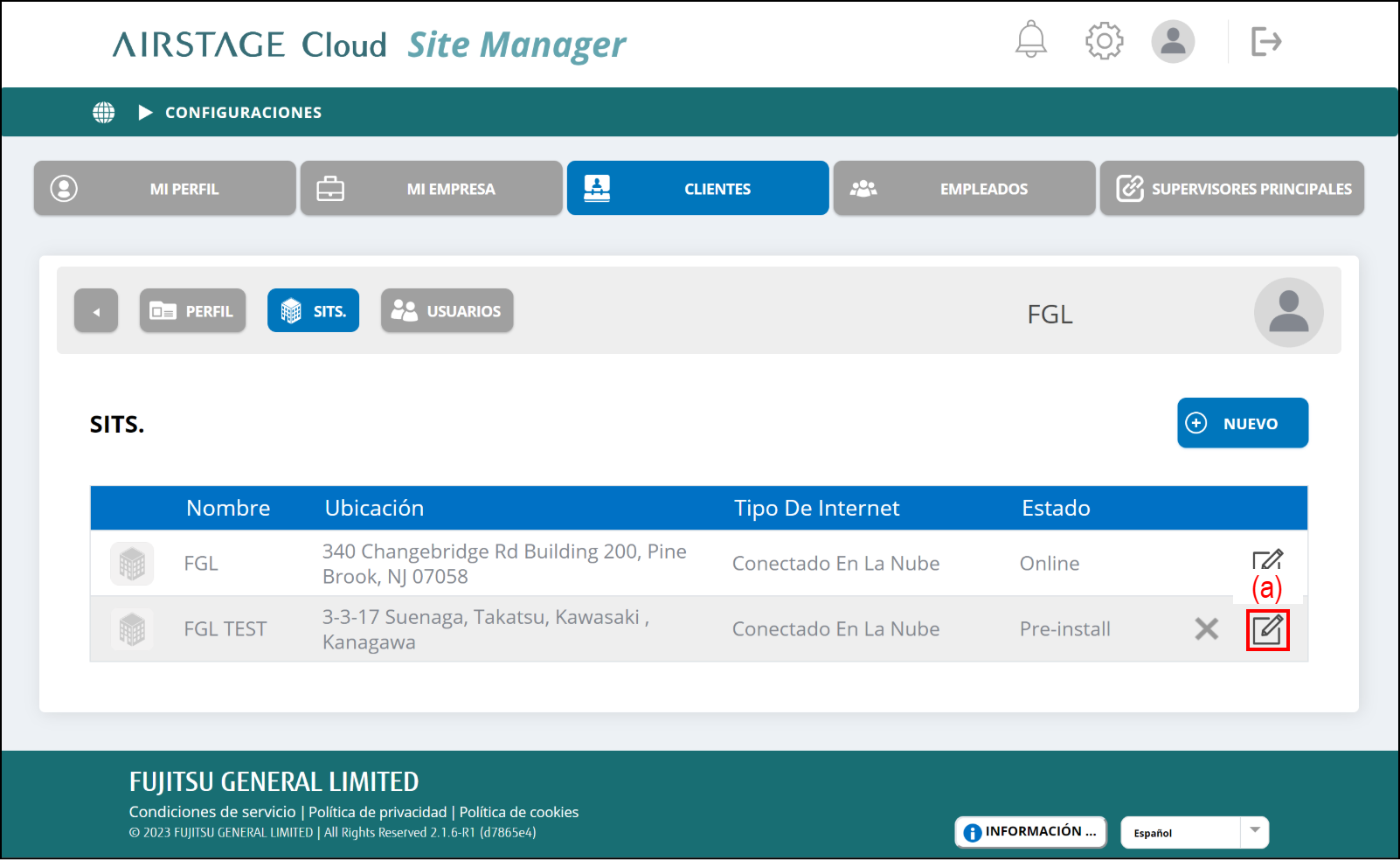 La pantalla cambiará al Panel de control del sitio. - Edite la información del sitio.