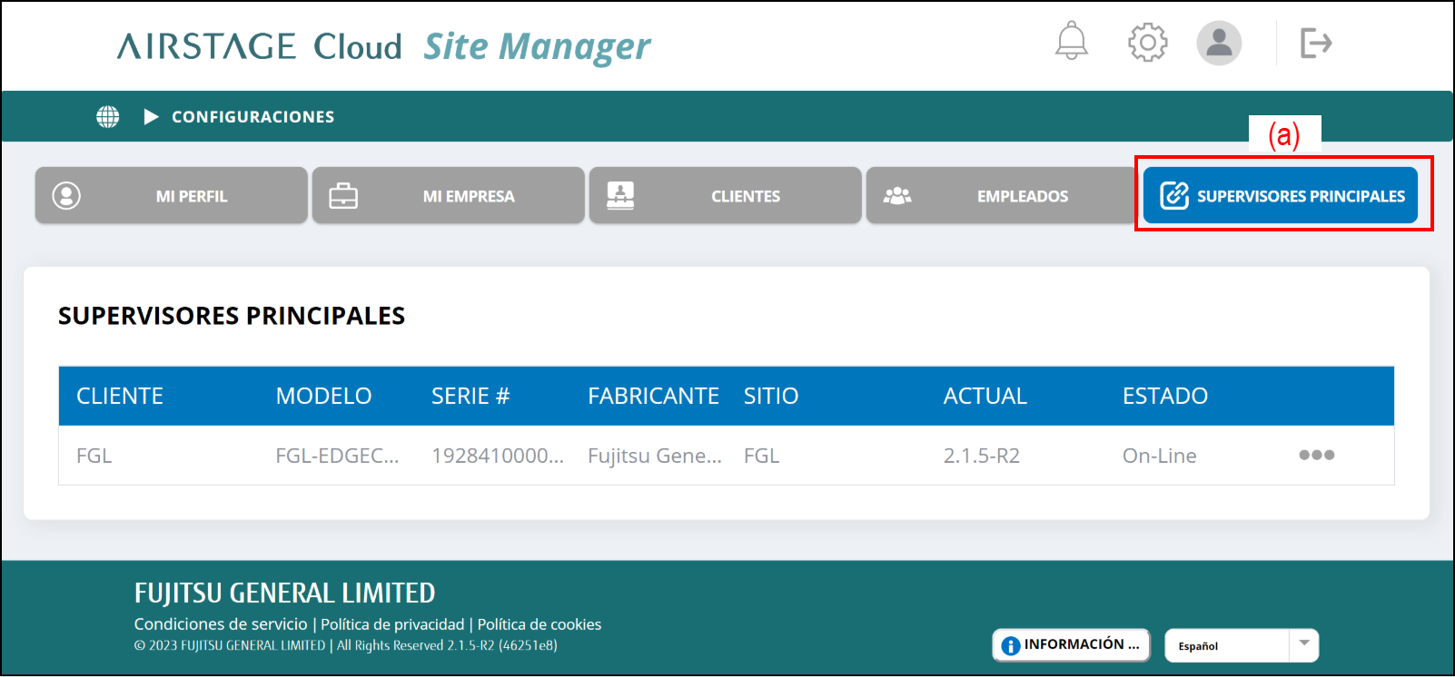Aparecerá la pantalla “SUPERVISORES PRINCIPALES” y podrá comprobar la lista del supervisor principal.