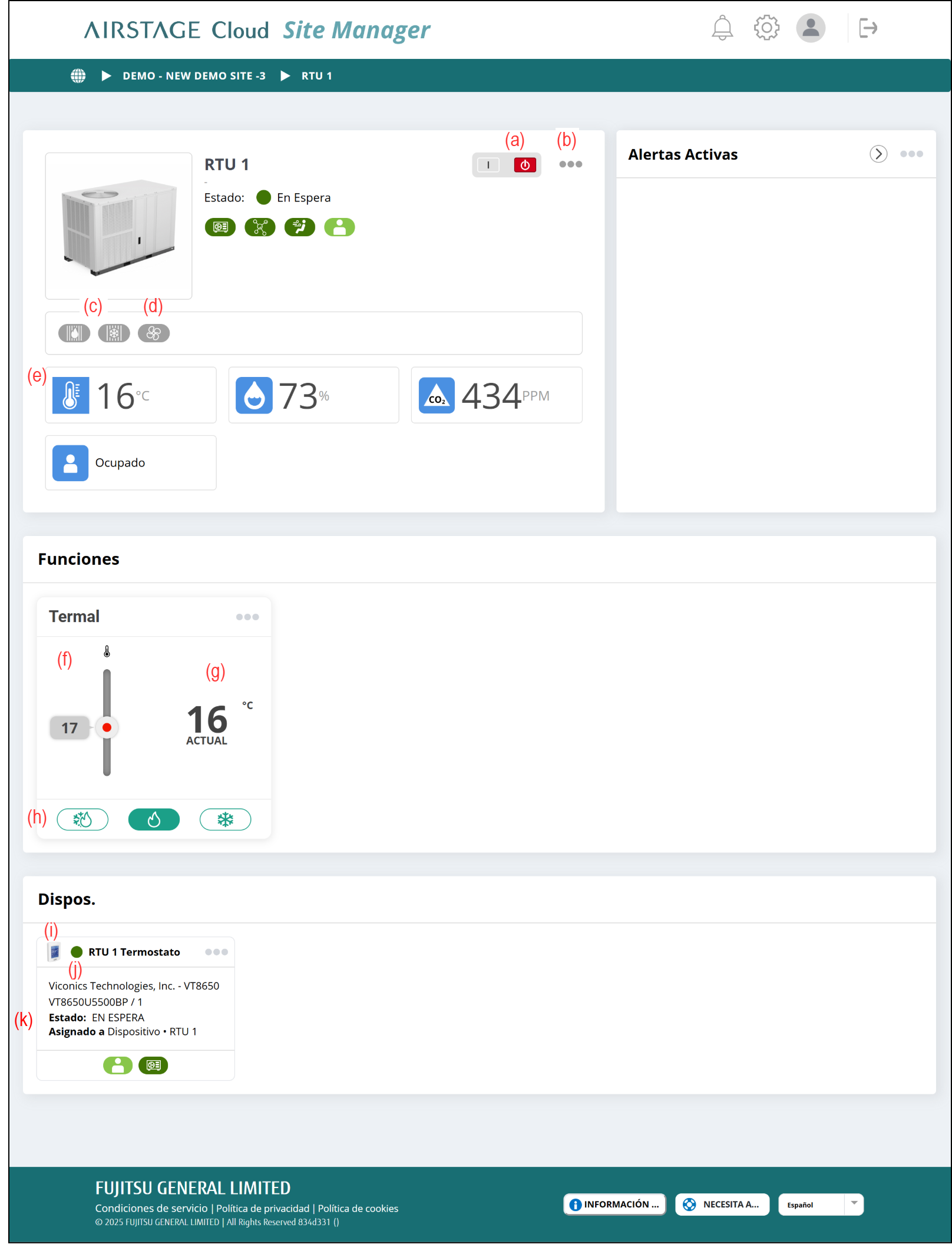 (j) Estado del termostato inteligente