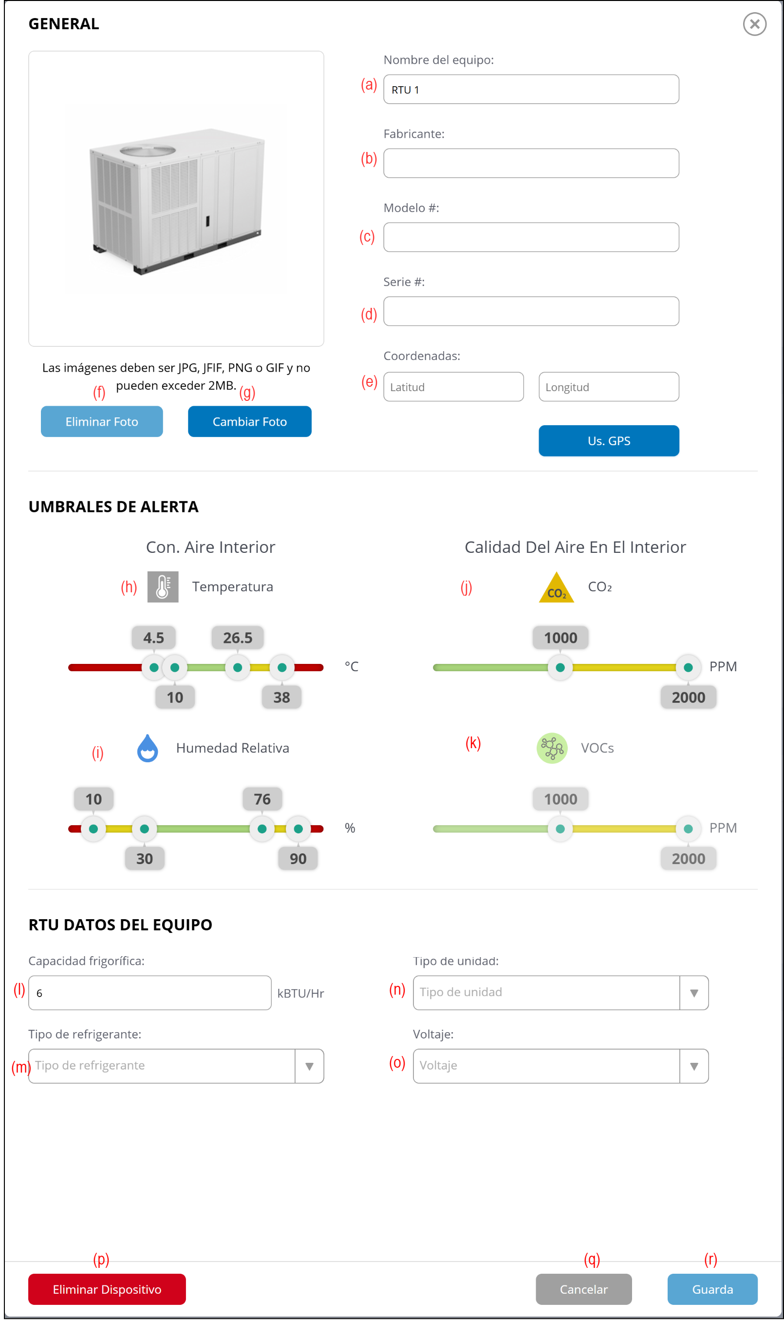 (j) Umbral de alerta de CO2
