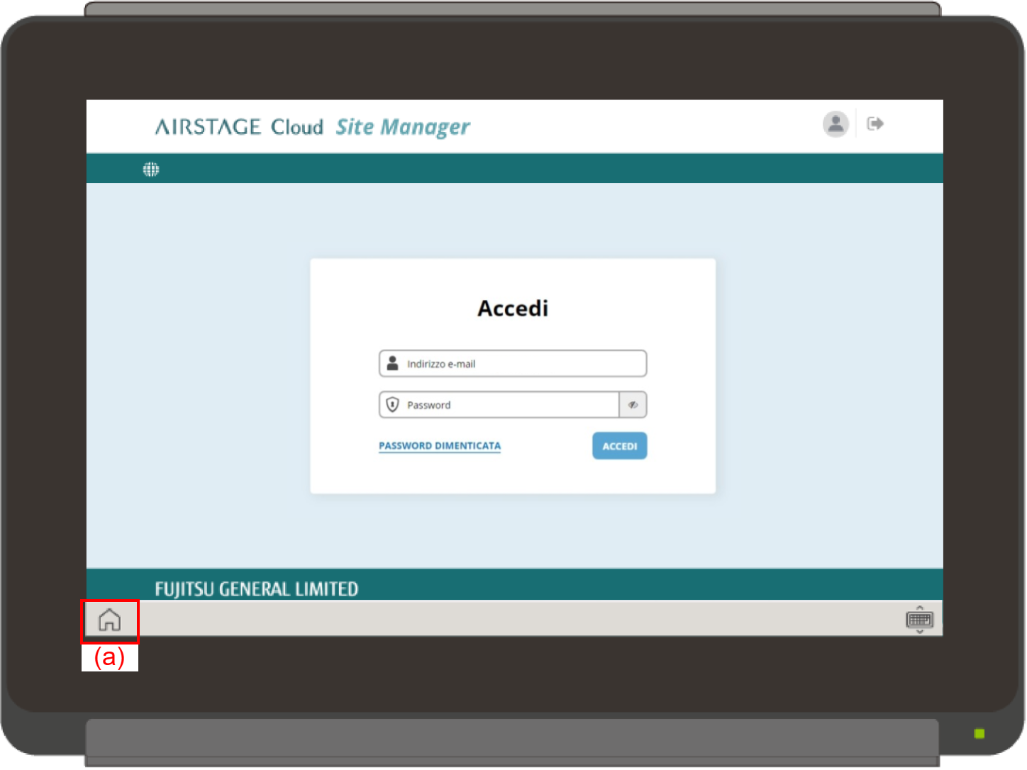 - Toccare l’area di immissione (b) sullo schermo a sfioramento di AIRSTAGE Edge Controller.