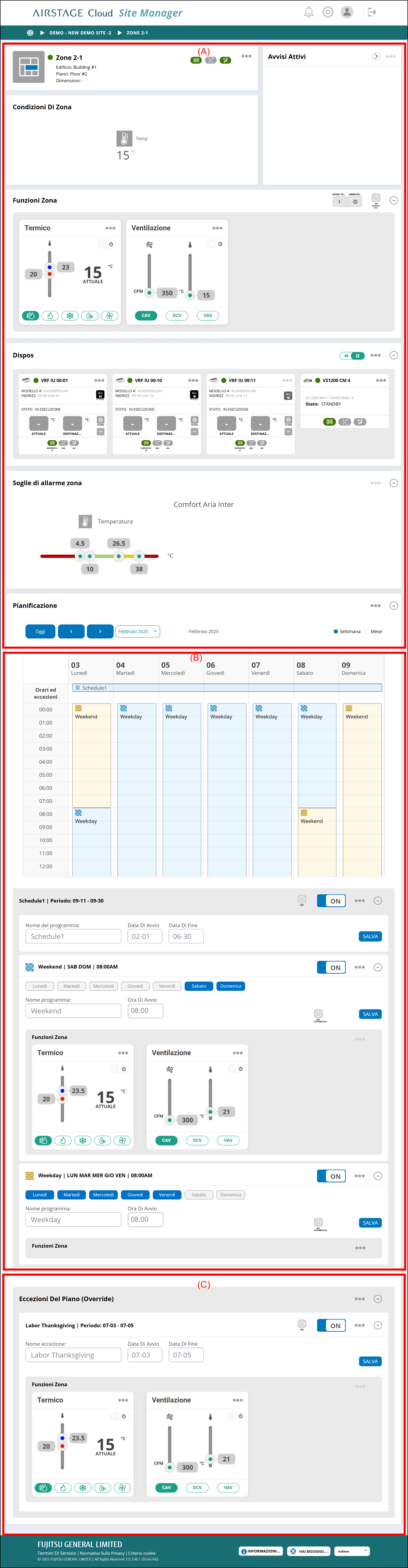La modifica delle impostazioni o la rimozione possono essere eseguite per la zona.