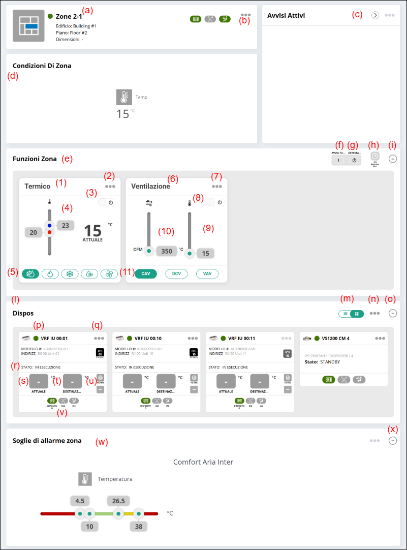 Rosso: criticoViene visualizzato un avviso nell’area “Avvisi Attivi” quando la condizione della zona raggiunge il livello di gravità medio o critico.