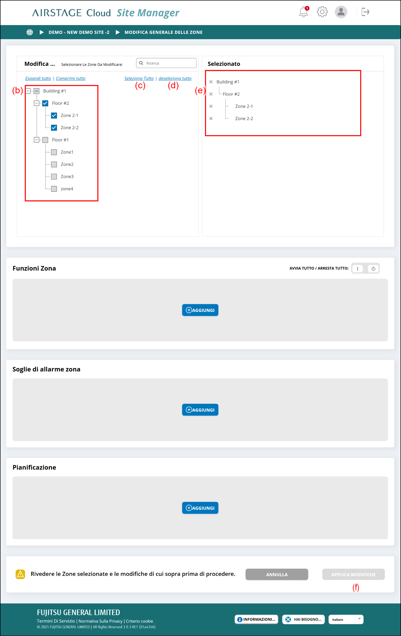 La modifica delle impostazioni può essere eseguita collettivamente per più zone.