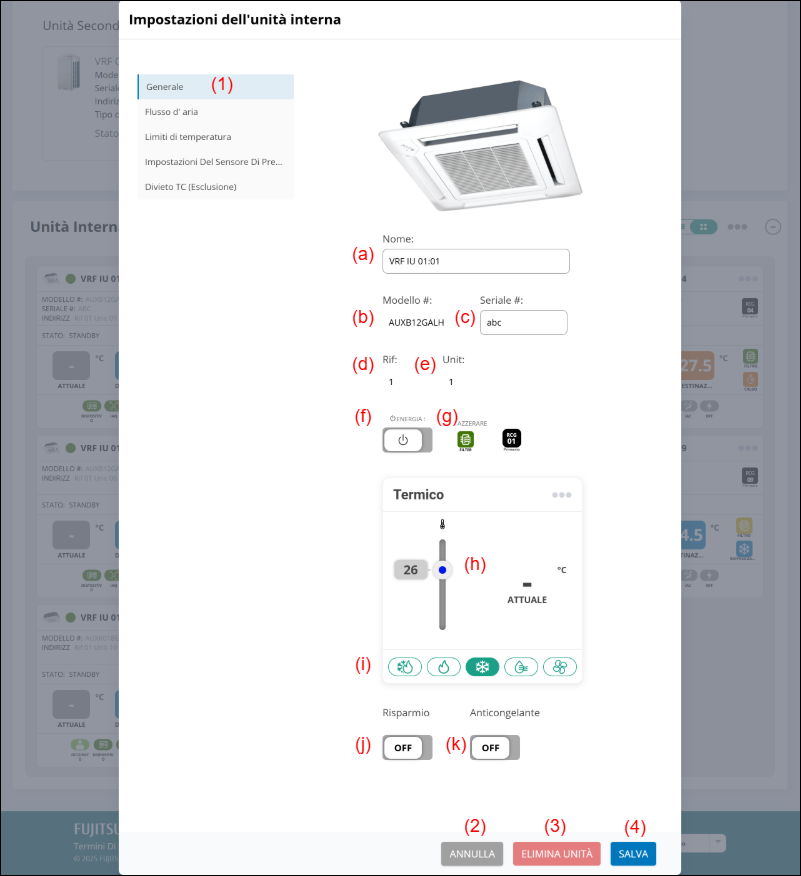 (a) Inserire il nome dell’unità interna.