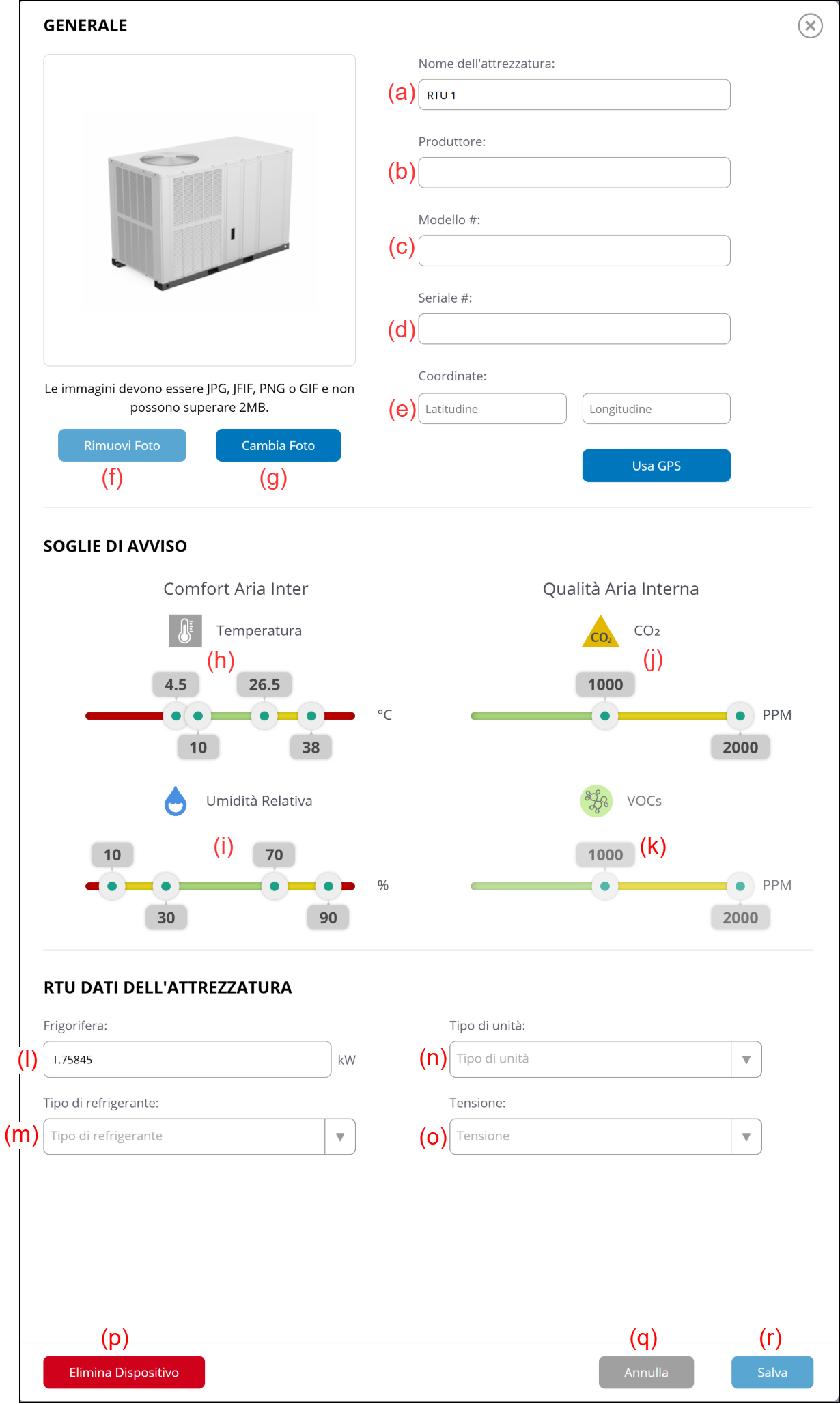 (i) Soglia di avviso umidità relativa