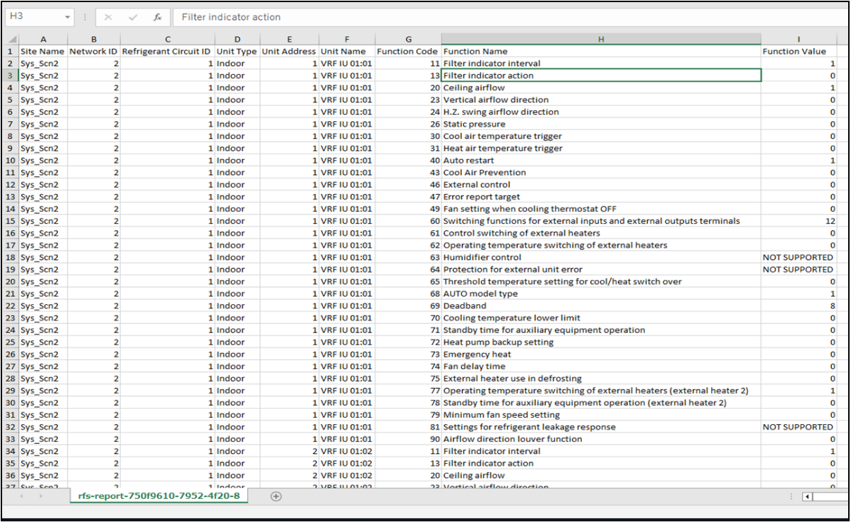 Questa funzione esegue “Leggi” e “Scrivi” sulle impostazioni delle funzioni (interruttore di destinazione) dell’unità interna e dell’unità esterna per ottenere un funzionamento ottimale in base all’ambiente di installazione. Inoltre, i risultati di “Leggi” e “Scrivi” possono essere emessi come rapporto sotto forma di elenco.