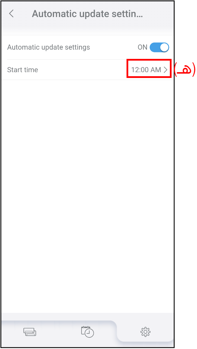 - انقر على (هـ) لتعيين وقت بدء التحديث التلقائي للبرنامج الثابت.