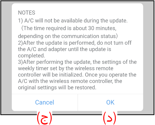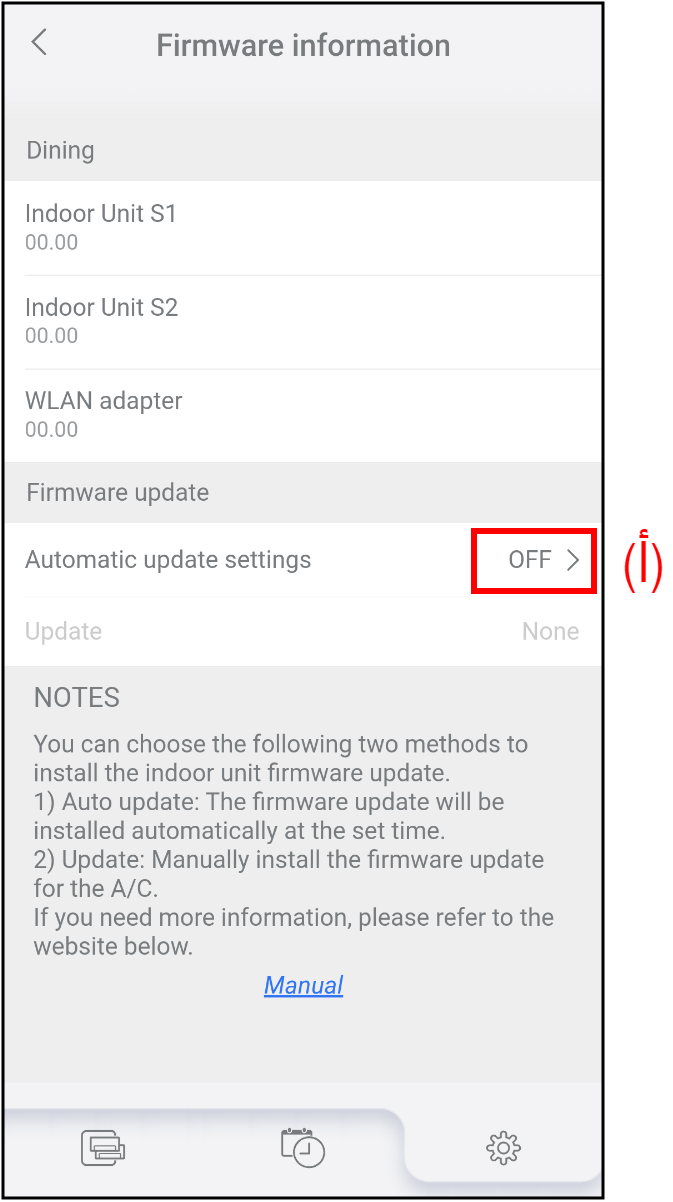 يمكنك ضبط الوقت لبدء التحديث التلقائي للبرنامج الثابت لمكيف الهواء ومحول WLAN.