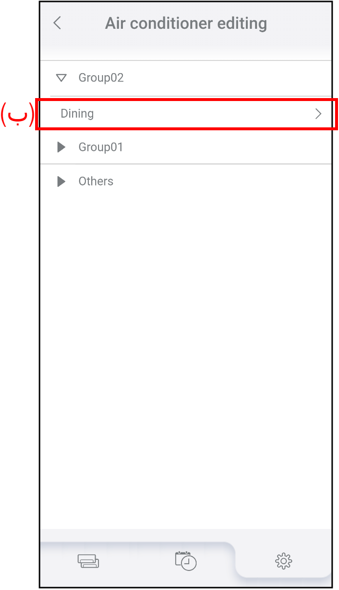 (ج) Indoor unit model name انقر لتعديل اسم الوحدة الداخلية. حرر الاسم باستخدام ما يصل إلى 20 محرفاً. (على سبيل المثال اسم الغرفة)