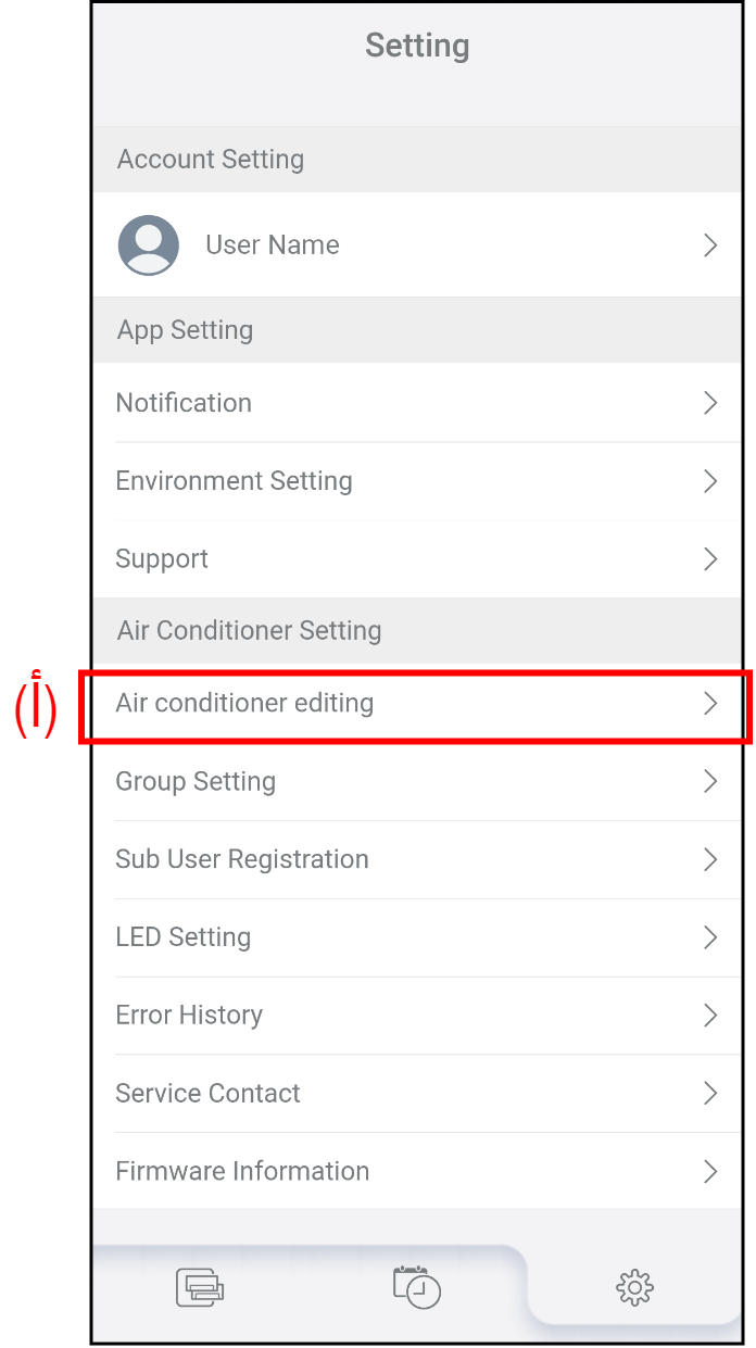تنتقل الشاشة إلى "Air conditioner editing".