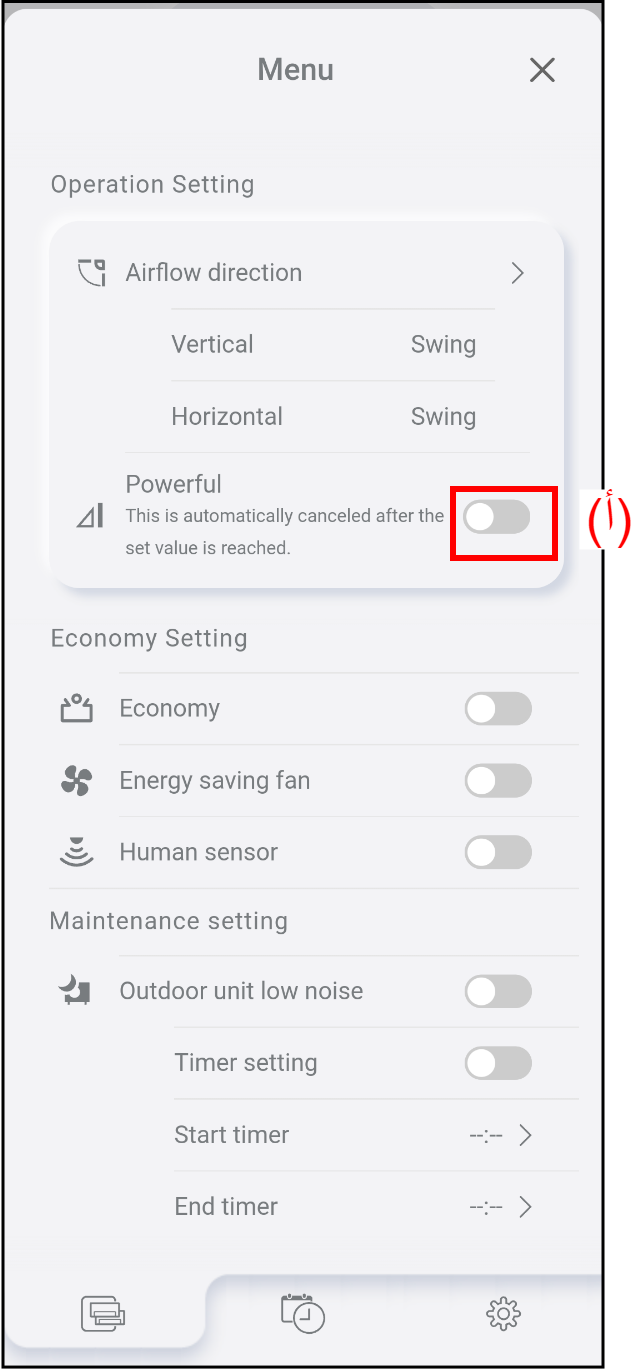 سيتم إيقاف التشغيل القوي تلقائيًا عندما تصل درجة حرارة الغرفة إلى الحرارة المضبوطة.