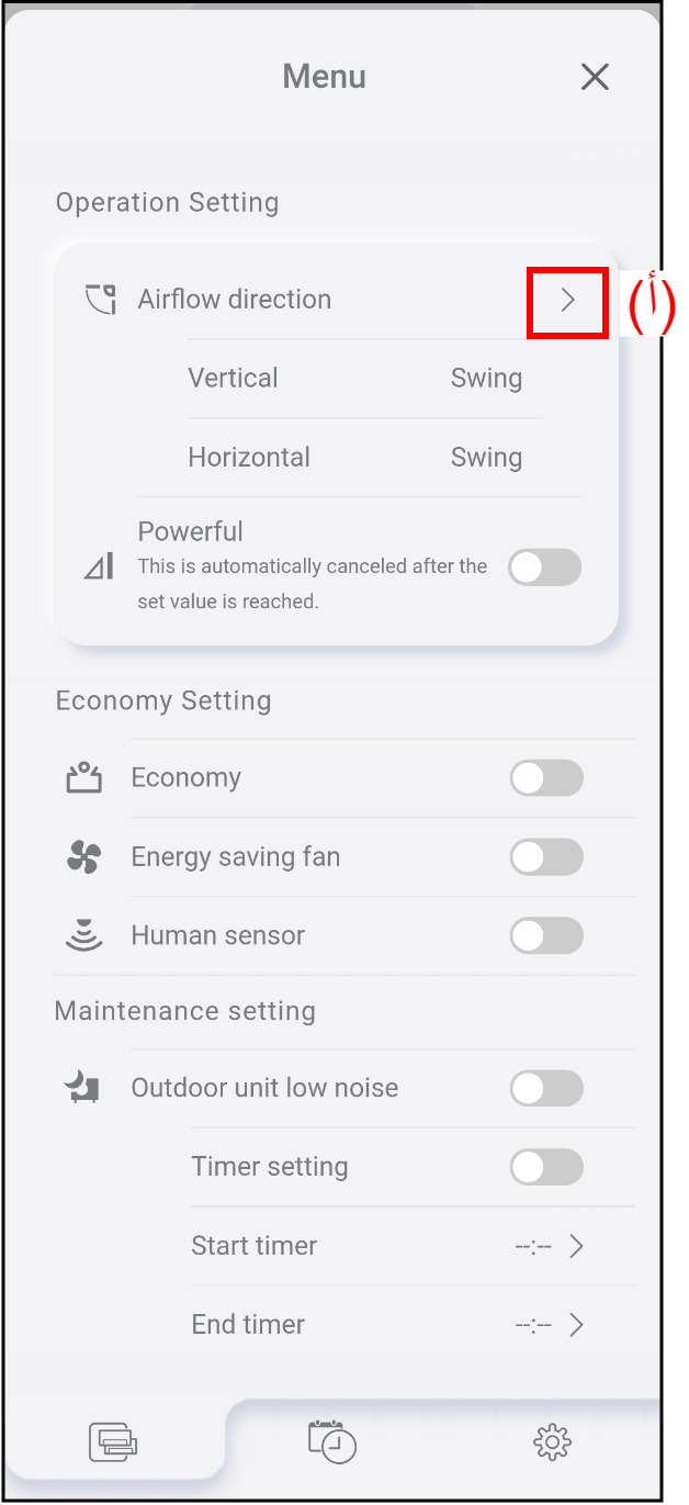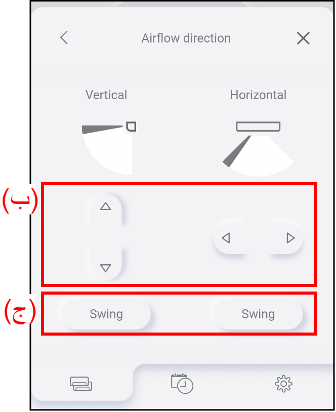 انقر على (ب) لضبط اتجاه تدفق الهواء.