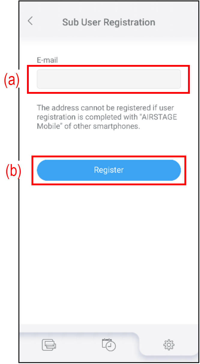 - Zadejte e-mailovou adresu dílčího uživatele do (a) na obrazovce „Sub User Registration“.