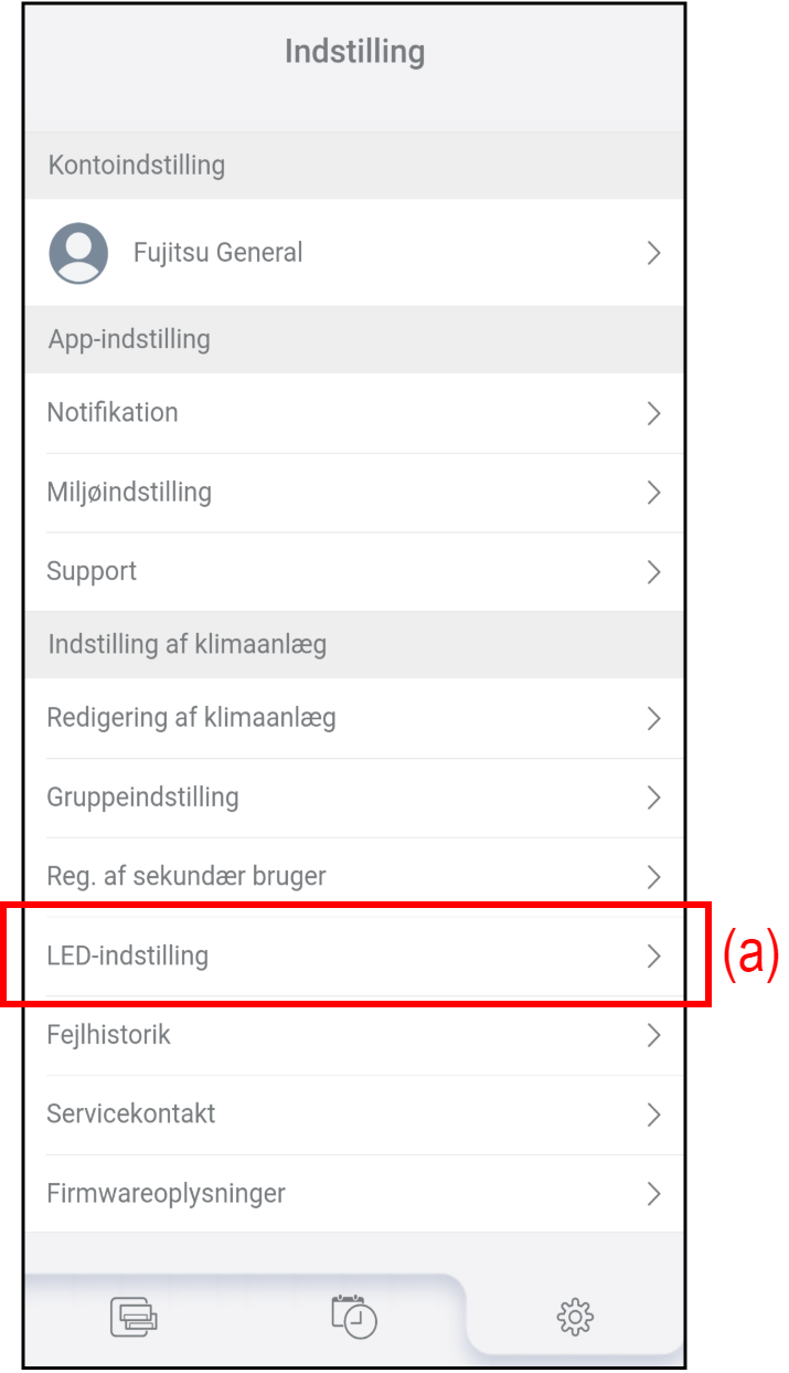 - Tryk på (a) på skærmen "Indstilling" for at ændre LED-indstillingen.