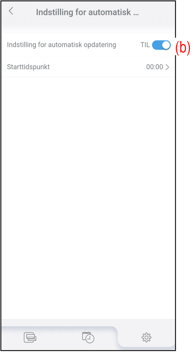 Tryk på (b) for at aktivere/deaktivere den automatiske opdatering.