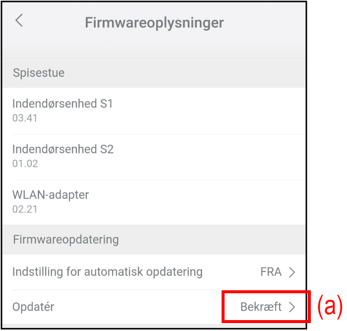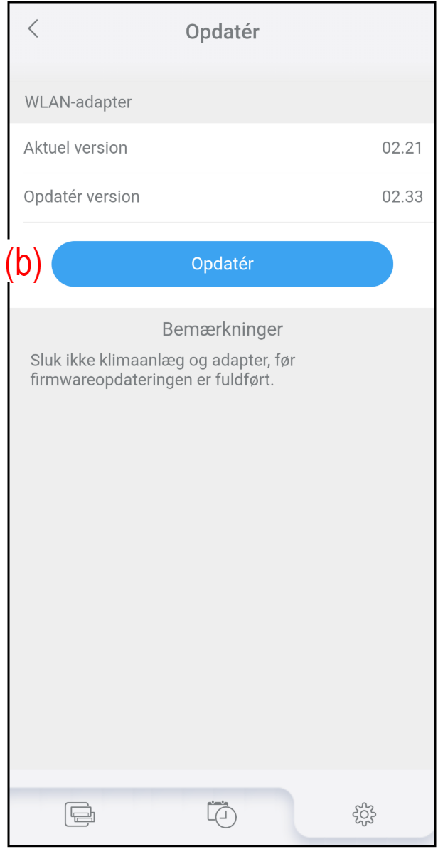- Tryk på (b) for at starte firmwareopdateringen.
