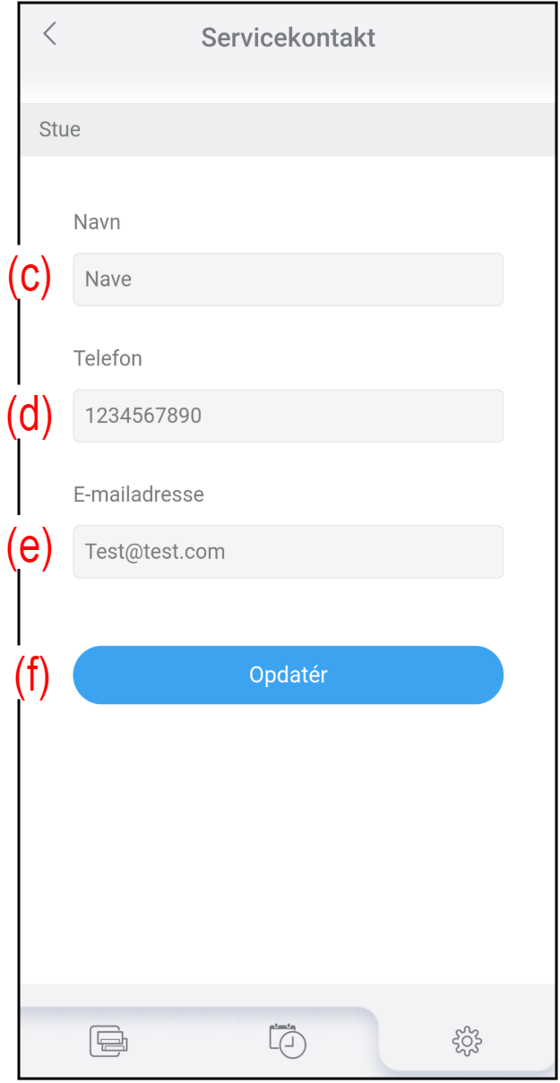 - Indtast oplysningerne om servicekontakten fra (c) til (e).