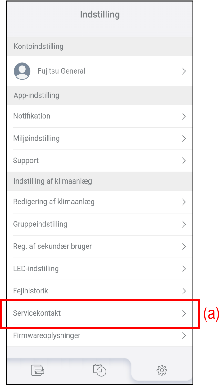 - Tryk på (a) på skærmen "Indstilling" for at tjekke eller redigere oplysningerne om servicekontakten.
