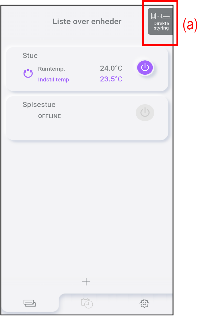 For at skifte kontroltilstand fra Cloud-kontrol til Direct control skal du betjene denne app på følgende måde:
