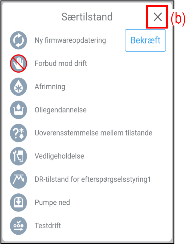 Forbud | Drift fra denne app er forbudt af den centrale betjening. |