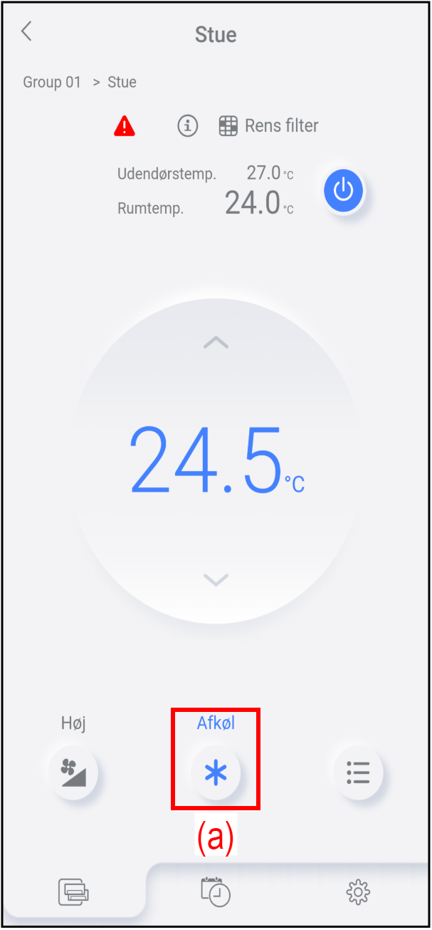 Tryk på ikonet (b) for den ønskede driftstilstand.