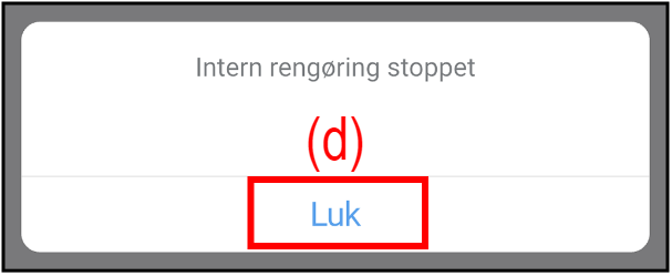" ses på skærmen, betyder det, at "Indvendig rengøring (varmerengøring)" er i gang.