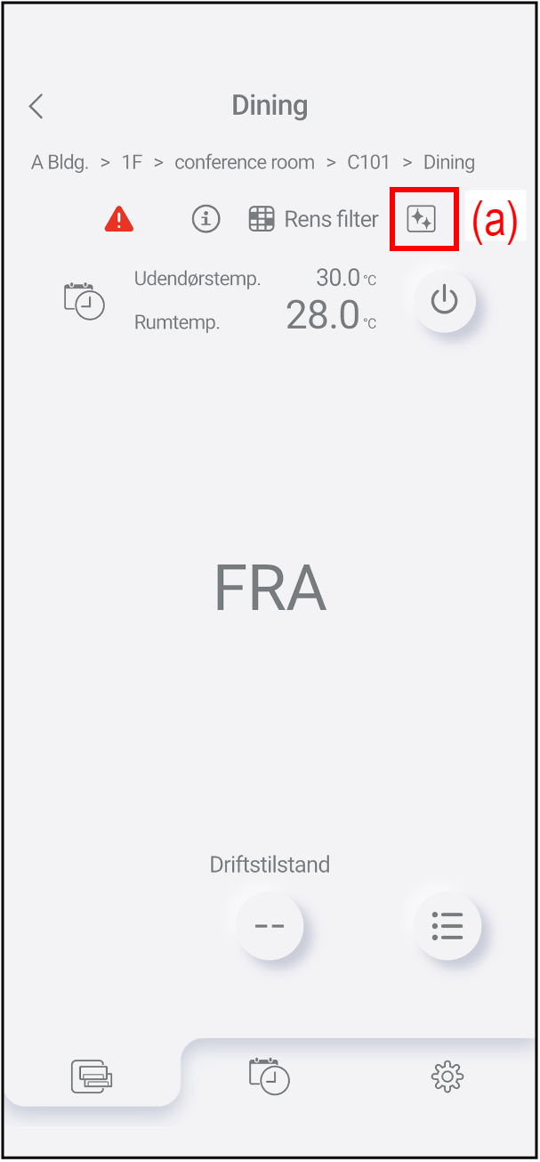 Tryk på symbolet (a) for at åbne vinduet "Indvendig rengøring".