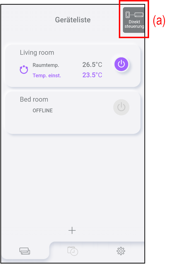 Die Registrierung der Klimaanlage ist auch für den Direktsteuerung-Modus erforderlich. Näheres dazu zur Registrierung der Klimaanlage siehe „REGISTRIERUNG DER KLIMAANLAGE“.