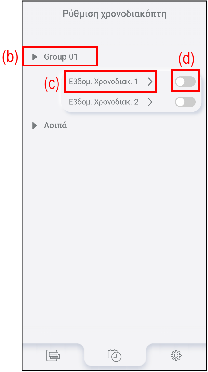 Πατήστε (c) για να ενεργοποιήσετε/απενεργοποιήσετε τον Εβδομαδιαίο χρονοδιακόπτη.