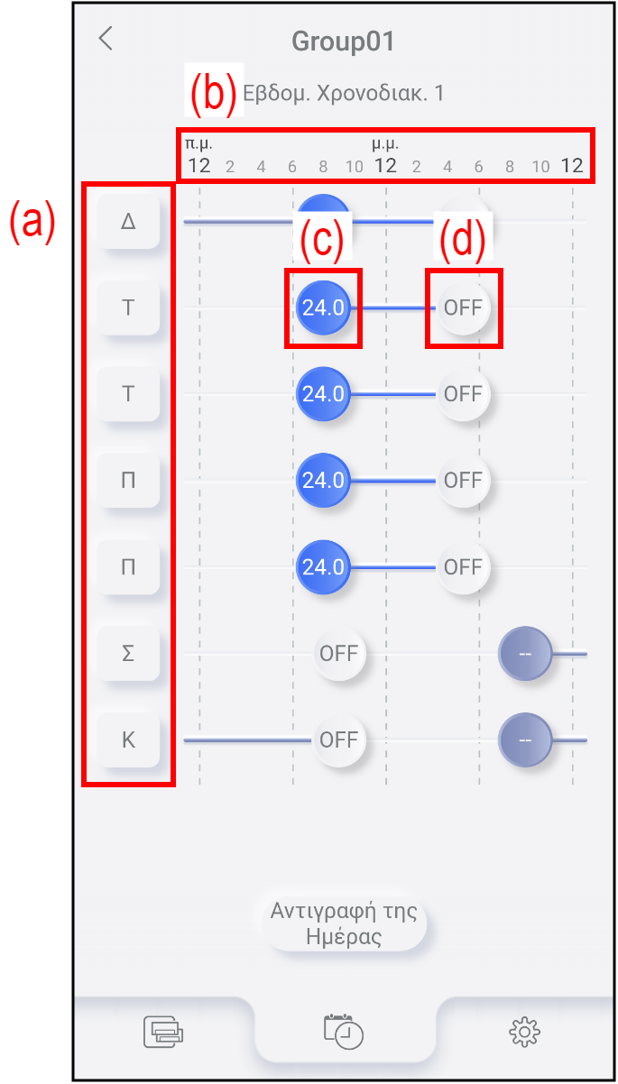Οθόνη ρυθμίσεων εβδομαδιαίου χρονοδιακόπτη