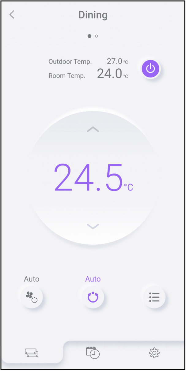 Individual air conditioner screen shows the room temperature and outdoor temperature.