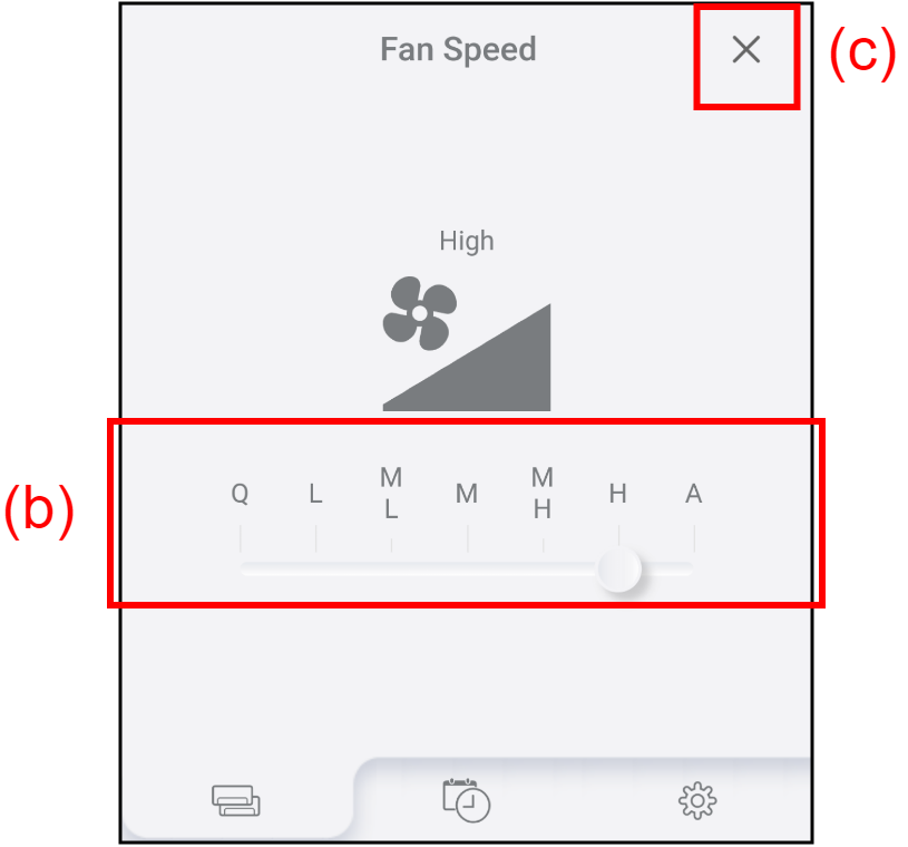 Scroll the bar (b) to adjust the fan speed.