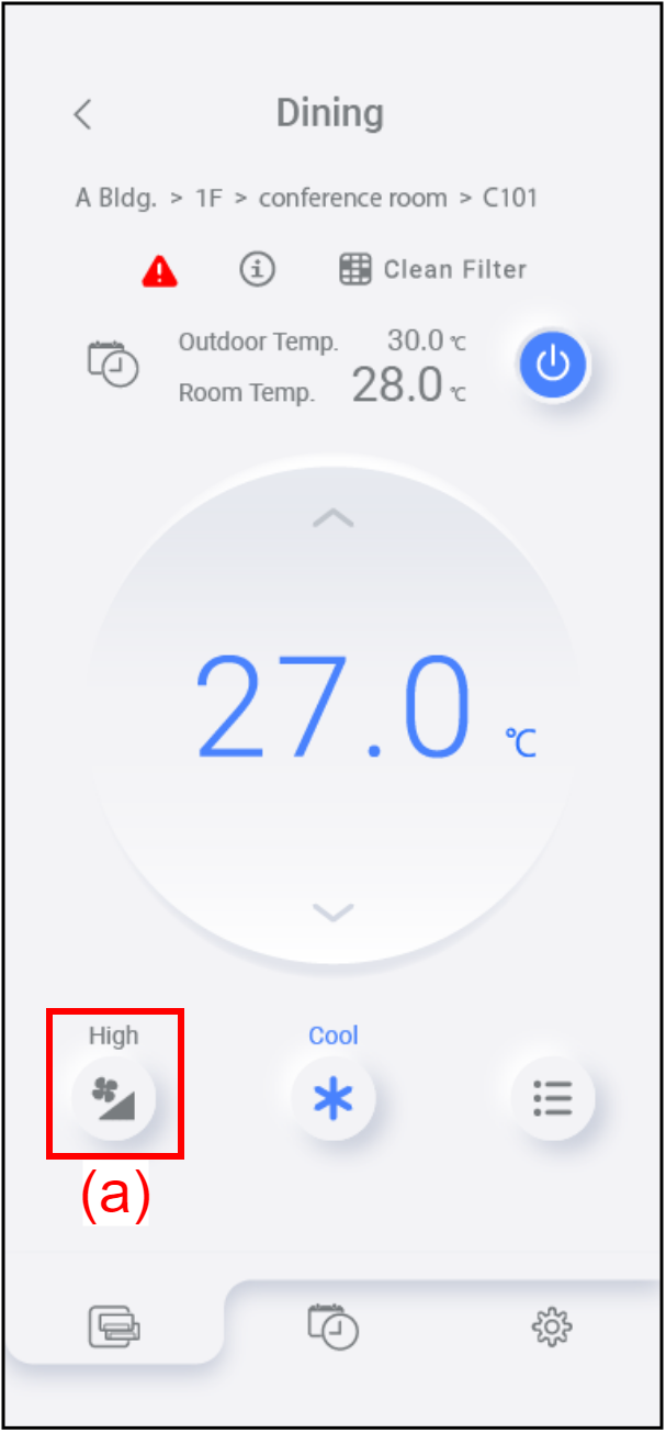 To change the fan speed, tap (a).