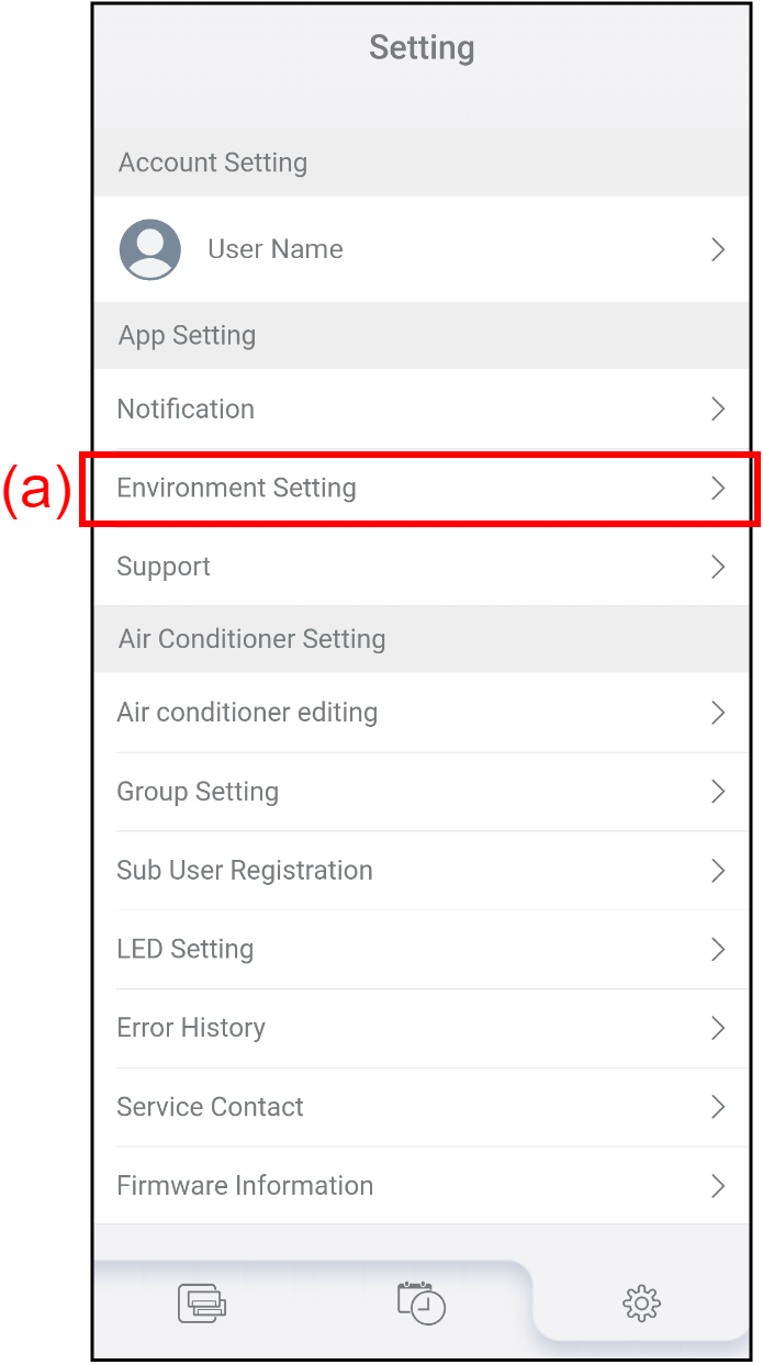 You can use the following functions from the "Environment Setting" screen: