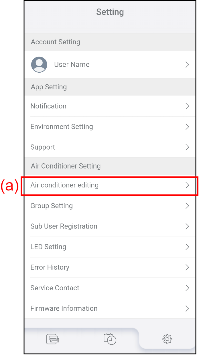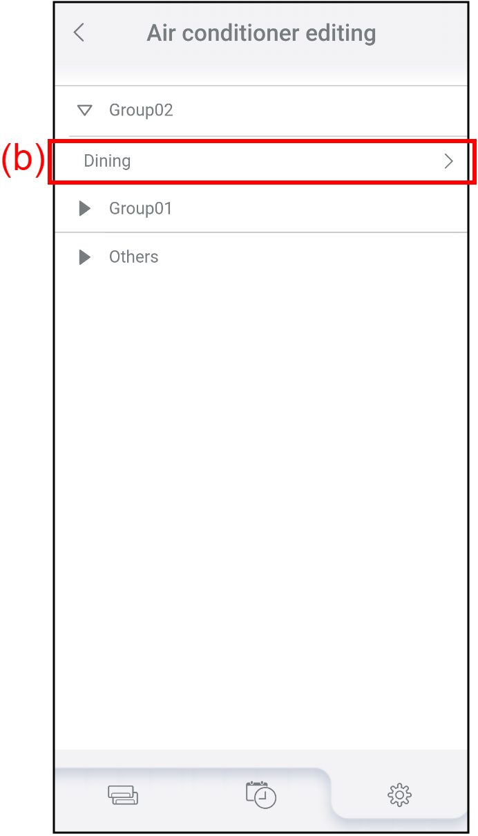 - Tap the air conditioner (b) which you want to edit its name or delete.
