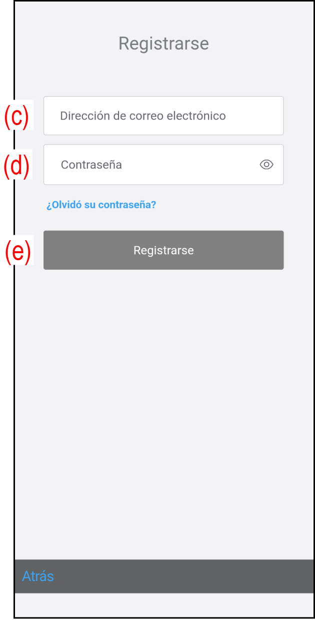 - Inicie sesión con la dirección de correo electrónico (c) y la contraseña (d) que ha registrado.