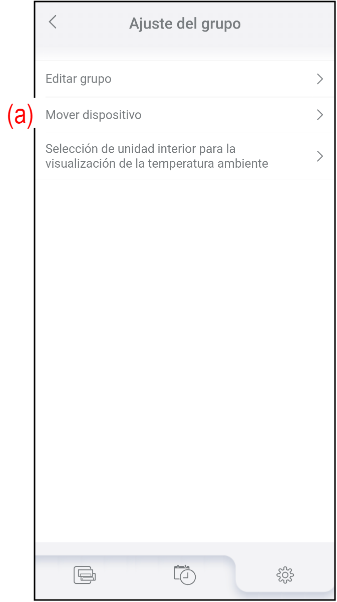 - Toque (a) en la pantalla "Ajuste del grupo" para mover el aire acondicionado a otro grupo.