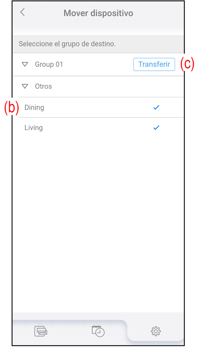 ] indica el aire acondicionado seleccionado. - Toque el botón (c) del grupo al que desea trasladarlo.