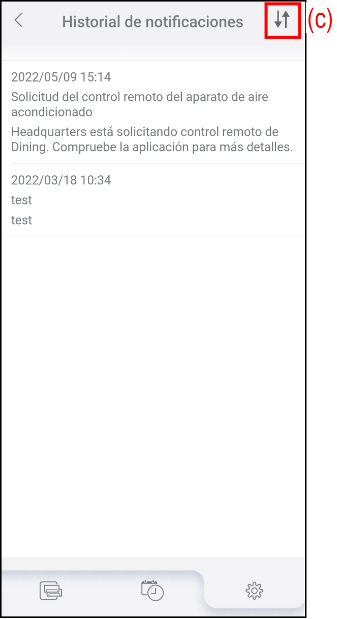 El historial de notificaciones se muestra en orden, primero la más reciente.