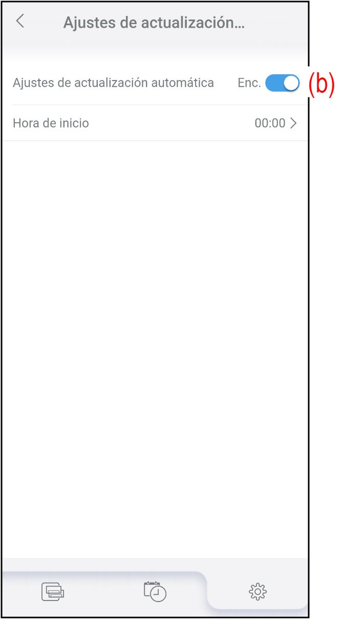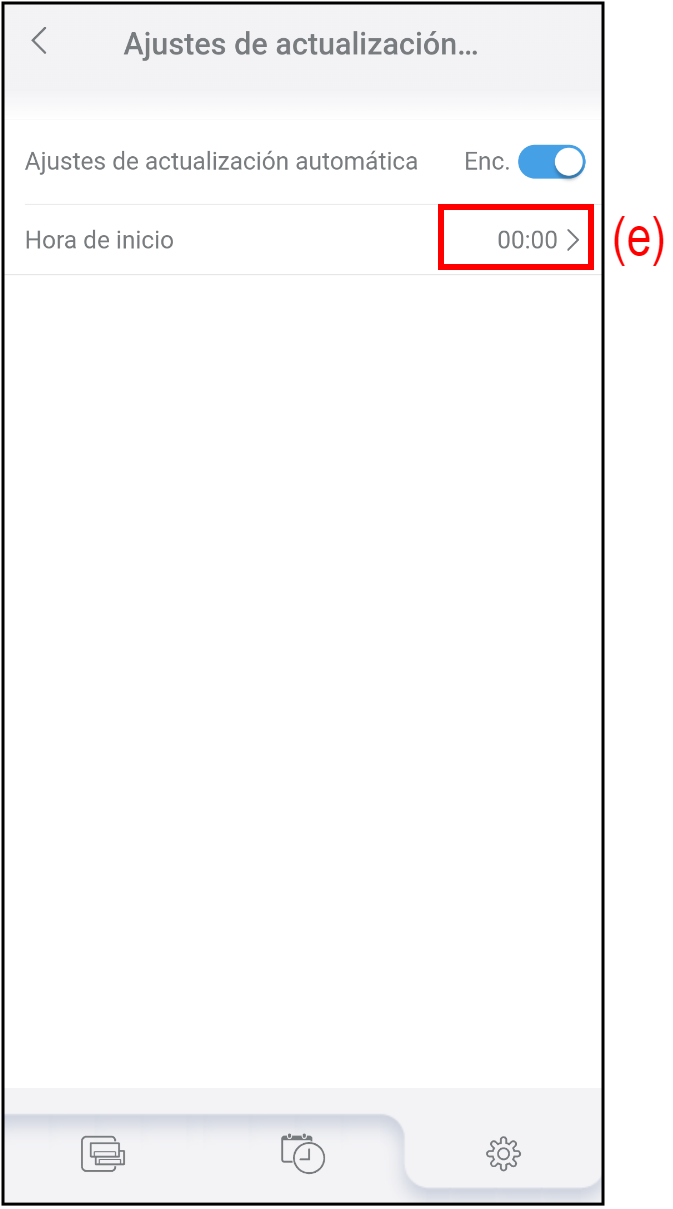 - Toque (e) para ajustar la hora de inicio de la actualización automática del firmware.