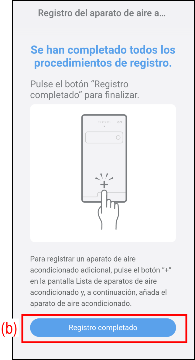 - Toque (a) para empezar a registrar un nuevo aparato de aire acondicionado en esta aplicación.