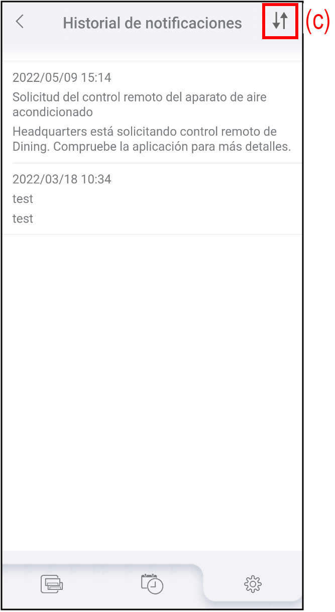El historial de notificaciones se muestra en orden, primero la más reciente.