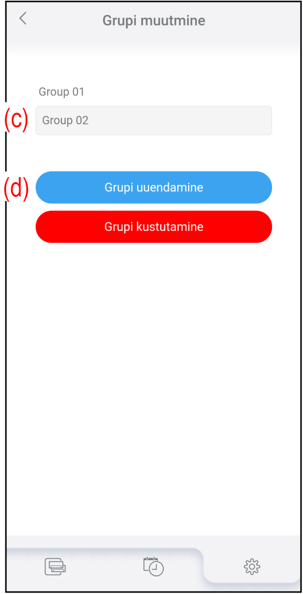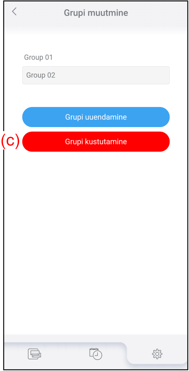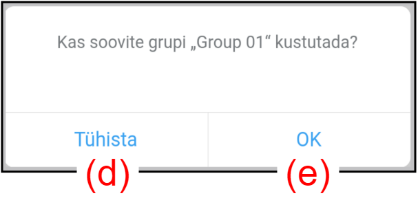 - Rühma kustutamiseks puudutage (e).