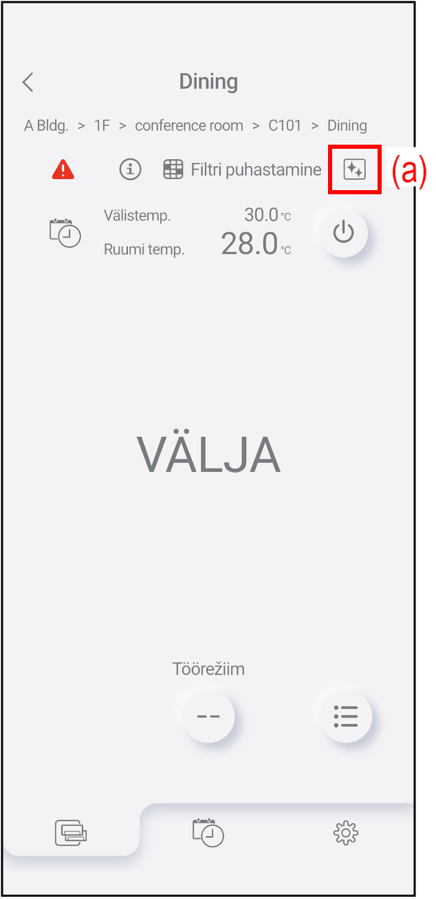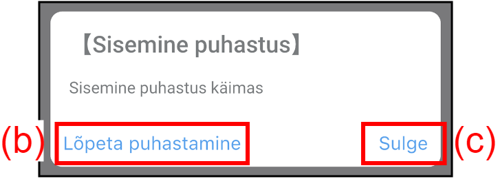 Akna „Sisepuhastus“ kuvamiseks puudutage ikooni (a).