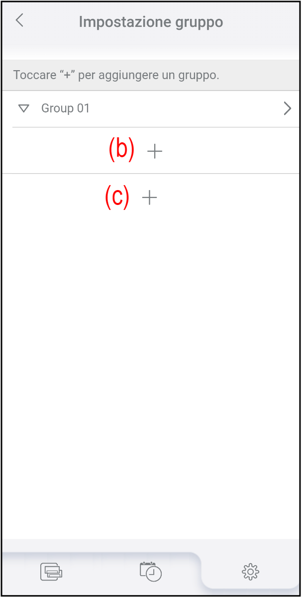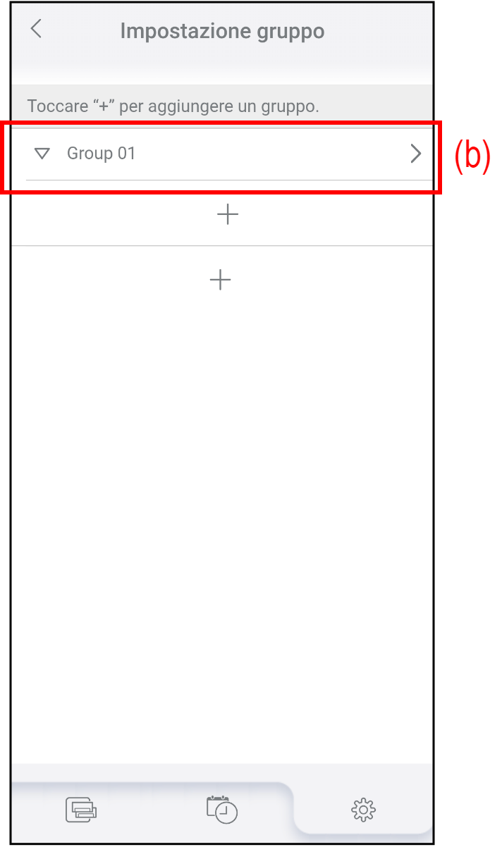 Toccare (a) sulla schermata "Impostazione gruppo".