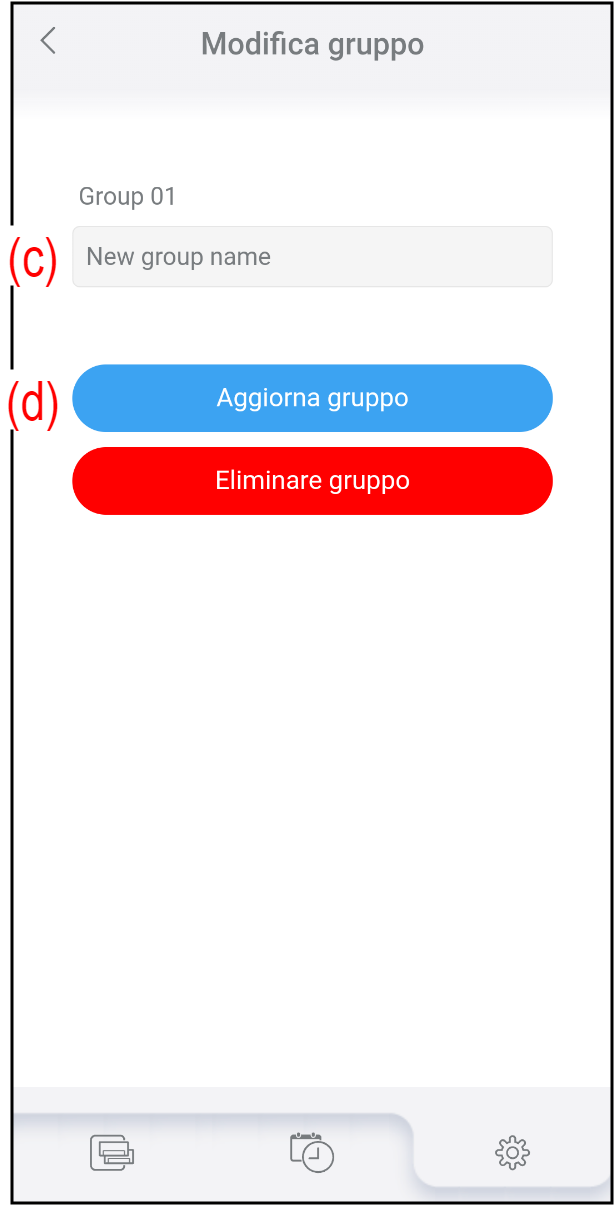 - Inserire il nuovo nome del gruppo in (c).