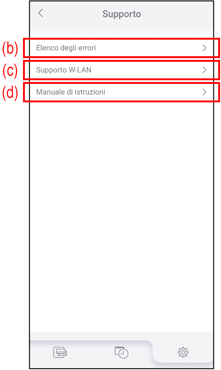 | (c) | Supporto W-LAN | È possibile accedere al Supporto per l'impostazione Wireless LAN sul nostro sito web. |