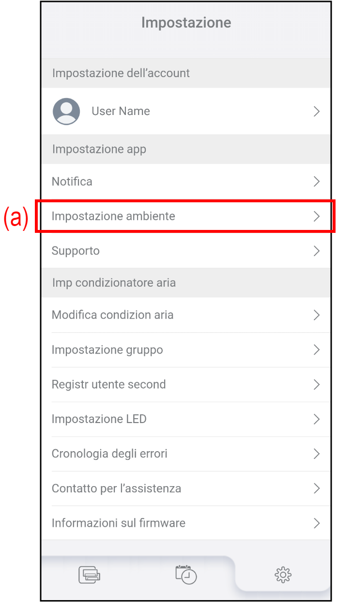 - Toccare (a) sulla schermata "Impostazione".